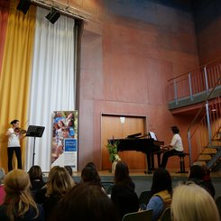 Zum musikalischen Auftakt der Tagung spielten Anja Leiser und Lailya Kuperschmidt ein Bourée aus der 3. Violincello-Suite von J.S.Bach.